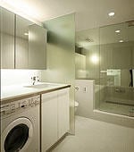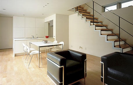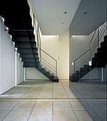 Sさまは、都心近くの約50坪の敷地に、モダンでシャープな外観の二世帯住宅を新築されました。当初は3階建をお考えでしたが、用途地域上、建物の高さに制限があるため、2階建+地下室の3層とし、子世帯は地階、親世帯は2階をメイン居住スペースとされました。 外観は、コンクリートとガラスで構成された極めてモダンなデザイン。細かなディテールまでこだわった、都市のオブジェのような造型です。また、都市部でのプライバシーとセキュリティー確保のため、接道面には窓を設けない"クローズド・ファサード"としています。
