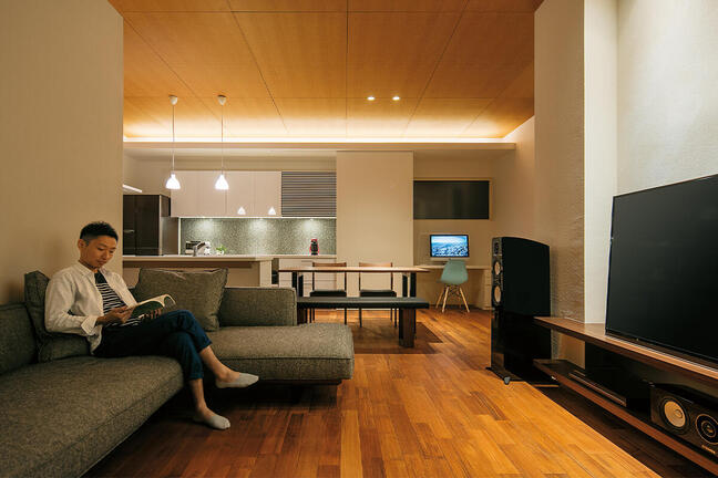 [神奈川県 Iさま邸] ホームシアターを堪能できる広びろとしたリビング。高い天井...