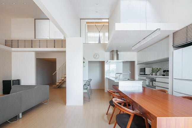 [京都府 Yさま邸] 大空間を、天井勾配や床素材、低いパーティションなどでゆるや...