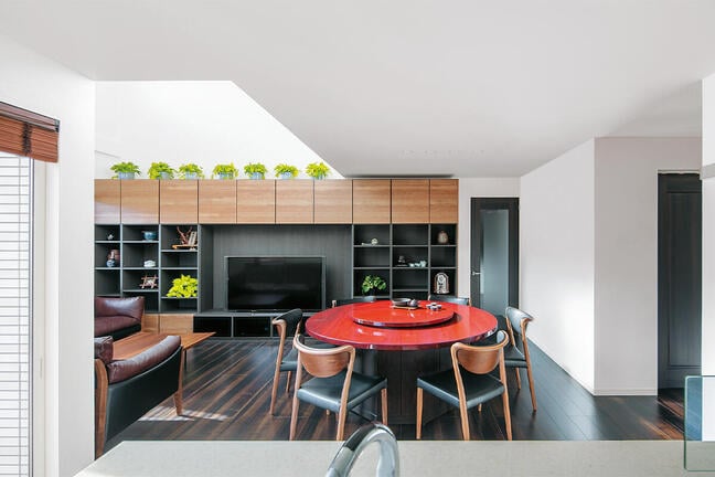 [東京都 Nさま邸] リビングからダイニングの眺め。それぞれ天井の高さを変えるこ...