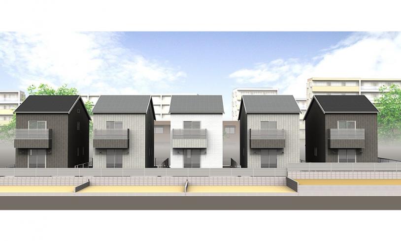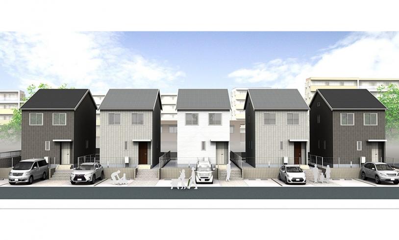 広々とした3LDKの間取り。さらに6.6帖の小屋「蔵」収納あり。5棟の貸家戸建ての並びは圧巻です。