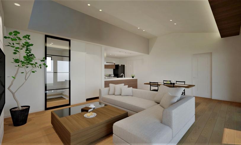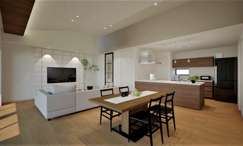 ●約25帖の広さで高さ最大3.45mの大空間LDK