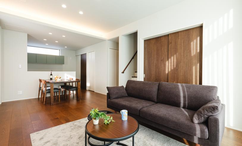 高天井&大開口リビングと独立した洗面所と脱衣室のある住まいです。