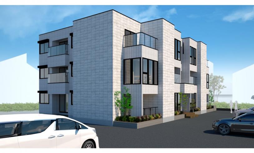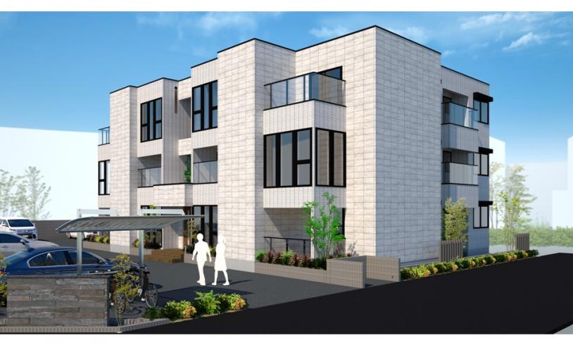 つくば市内の賃貸住宅専用分譲地内に上質なファサードの賃貸住宅が完成しました。東南角の好立地を生かし、分譲地の価値を高める高級感あふれる外観デザインとなっております。長くお住まいいただくためにオートロック設備、テレワークに嬉しいミニラボスペース等を設置いたしました。