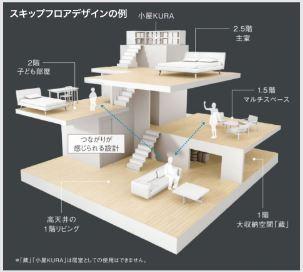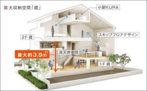 「家族が自然と心地良くつながる住まい」をコンセプトに、スキップフロアや大収納「蔵」などを取入れて空間設計した住まいが「蔵のある家」です。