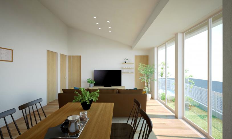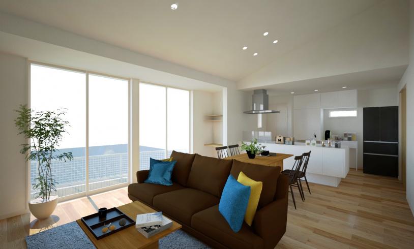 21帖のLDKと天井高最大約3.7mの大空間