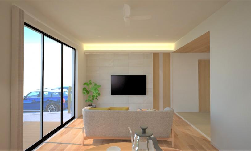 畳コーナーとつながったリビング