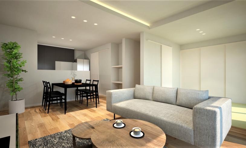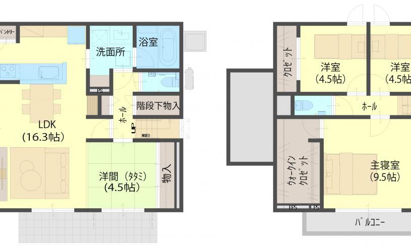 大屋根が特徴のデザイン性や、水回りを集中させた動線、3LDKをベースに将来的に間仕切り可変などもしやすい洋間畳スペースを設けるなど
