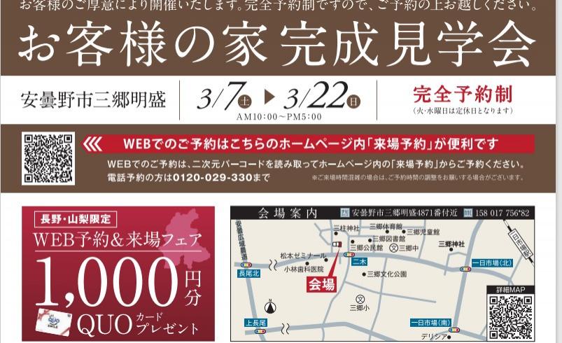 | 名称 | お客様の家見学会 安曇野市三郷明盛会場 |