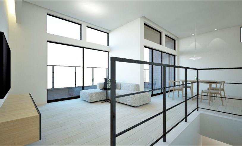 「パノラマの眺望を豊かに愉しむ空間、2階リビングの