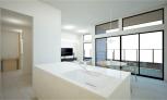 美しい大理石調で統一されたアイランドキッチンは、トール収納内