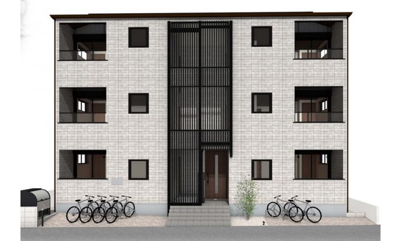 賃貸物件が立ち並ぶ中、都市型の3階建て共同住宅です。ファミリー向け・子育て環境を意識した収納力の確保、高級感あふれる全面タイル張りの外壁、テレワークスペースを確保し、防犯面を意識したオートロック設備・防犯カメラの設置、各世帯に太陽光・蓄電池を搭載したZEH-Mの賃貸住宅です。