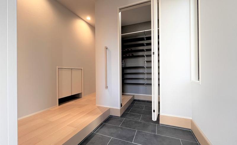 ■独立した洗面とキッチン近くのランドリースペース。水廻りストレスフリー設計