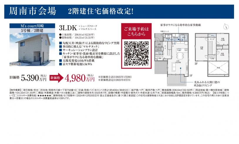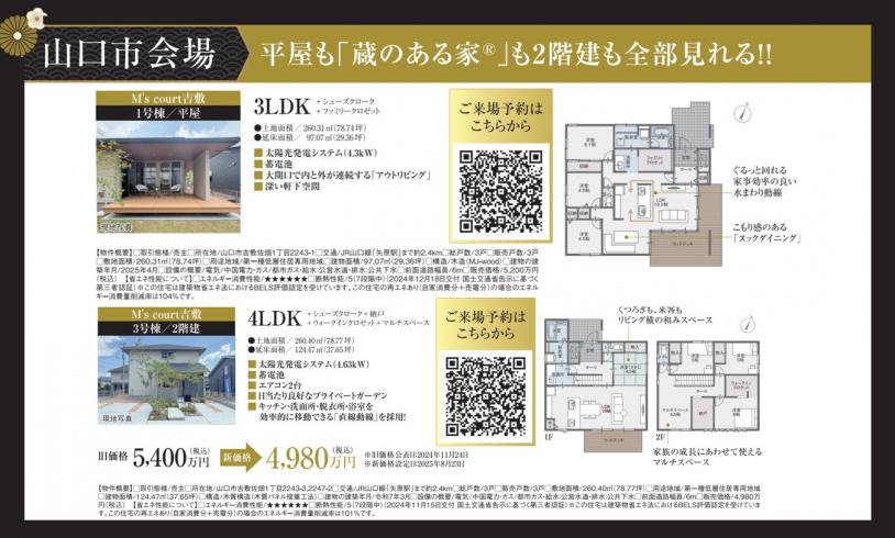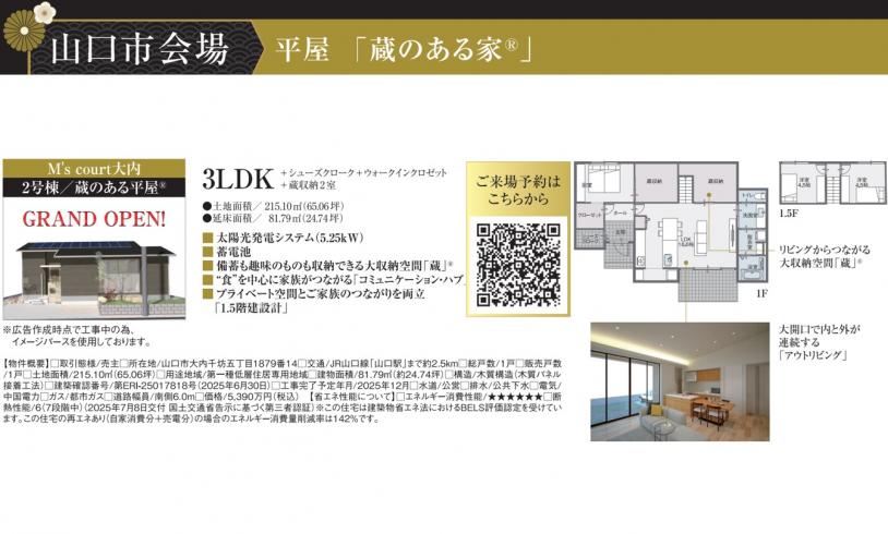 | 住所 | 山口県下松市※県内一斉見学会です。詳細はWEBサイト内の「建売見学会詳細チラシ」をご覧ください。 |