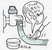 ◆ガスもれに気づいたら、元栓を閉め、窓を開ける。電気・火気は厳禁
