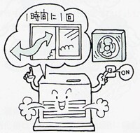 閉めきった室内でガス器具やストーブ、ファンヒーター、暖炉を使うときは、時々換気扇を回し、少なくとも1時間に1回は窓を開けて新鮮な空気を入れましょう。換気が不充分だと酸欠事故がおこることがあります。