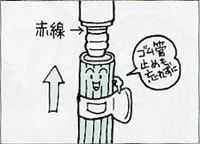 1.元栓を閉めてから、はさみでゴム管を切る