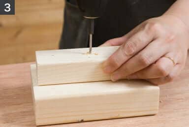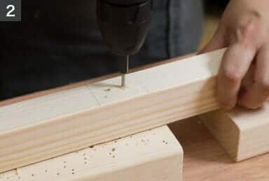 材料❷と材料❻の接合部に木工用接着剤をつけ接着し、仮止めしたスリムビスで固定
