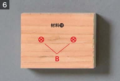 右記を参考に材料❿に貫通穴用の印Bをつける
