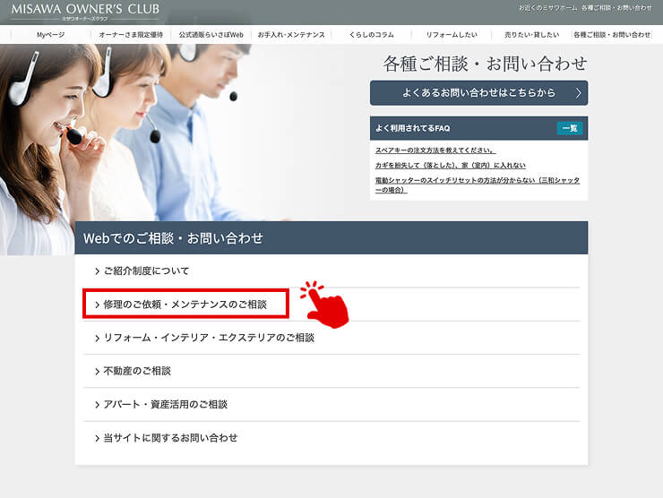 修理依頼はミサワホームよりご案内しているフリーコールにて承ります。