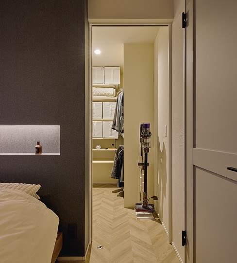 日々の生活動線を考慮して、寝室から引戸でつながる大きなウォークインクロゼットを新設しました。 -